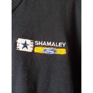 Port Authority Solid Blue V-Neck Sweater Men size XL Knit Pullover Ford Logo