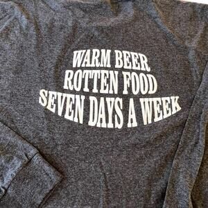 Men’s two XL long sleeve crewneck gray T-shirt. WARM BEER, ROTTEN FOOD, SEVEN DAYS A WEEK Made of 50% cotton 50% polyester. Like new condition.
