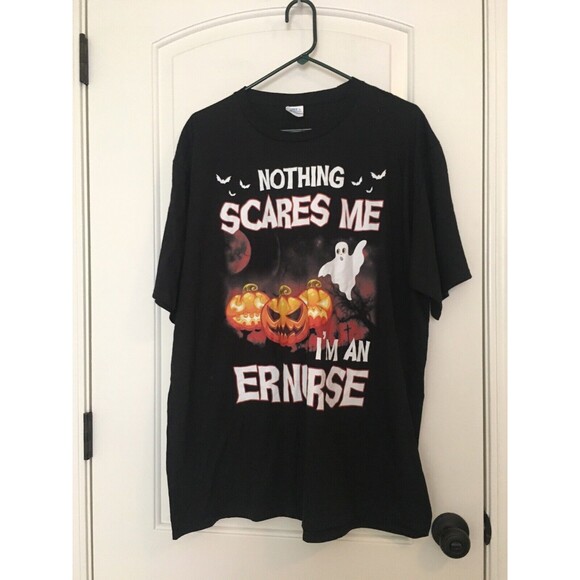 Port & Company Unisex Adult Halloween ER Nurse T-Shirt Sz 2XL Short Sleeve Shirt Top Clothes in great condition. The front of the t shirt says NOTHING SCARES ME I'M AN ER NURSE.