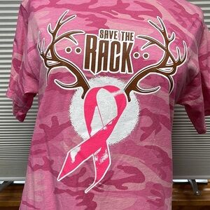Port & Company Pink Camouflage Breast Cancer Ribbon Save the Rack T-shirt Small