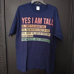 Port & Company "Yes I Am Tall" Novelty T-Shirt XL Navy Blue NWT