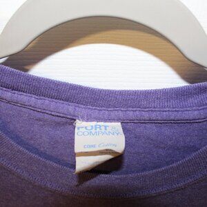 The Port & Company purple cotton/polyester blend XL t-shirt is a comfortable and durable piece of men's clothing. Made from a blend of polyester and cotton, this regular fit t-shirt features a crew neckline and short sleeves for a classic look. The machine washable garment care instructions make it easy to keep clean and maintain. Perfect for casual wear, this t-shirt is a versatile addition to any wardrobe, offering a vibrant purple color that stands out from the crowd.