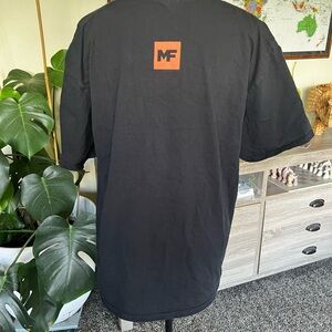 Bold black tee with vibrant orange graphic. Perfect for casual wear. 100% algodon