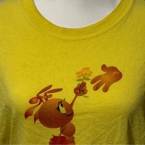 This vibrant yellow tee from Port and Company is crafted from soft cotton, offering a comfortable fit. The short sleeves and crew neck design make it a versatile addition to any wardrobe. Its eye-catching color and dynamic graphic design on the front add a playful touch to your style.