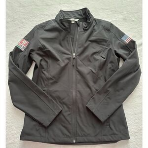 Port authority women’s black jacket with flag and logo patch size L