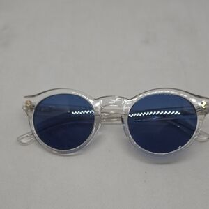 Stylish glasses with transparent frames. Features elegant gold accents. Perfect for a modern look.