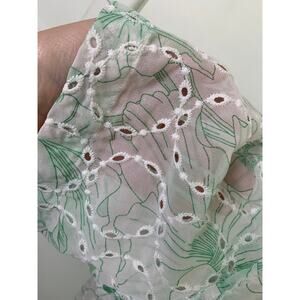 Portabella New York Embroidered Chiffon Men Shirt M Green Floral Boho