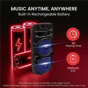 🧿600 WATT POWER: This high powered wireless karaoke PA portable bluetooth speaker is equipped with dual 8" subwoofer and 1" tweeter with 600 watt peak power / 300W RMS at 2.6 ohm for full range stereo sound reproduction and impressive bass response