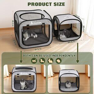 【Sturdy & Stable】Pawtenda playpen for cat have a unique dual-cube design for great stability. The large cage is 31.5*31.5*26.38 inches, and the small one is 20.47 inches. They can be used separately or connected to offer your pet flexible activity space.