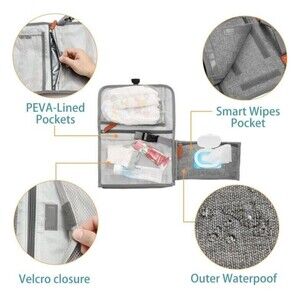 Multiple Pockets:changing pad portable allows ample organized storage to hold 4 x diapers, rash creams, and other necessary baby stuff in inside pockets and parents' essentials in the external front pocket and 1 x 100 wipes packet in smart back wipe pocket