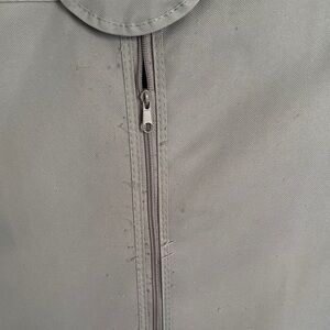 Keep your clothes organized and dust-free with this portable gray garment rack. Perfect for home storage and organization. Please note it is a used item and see close up pictures for details. This folds into smaller size for storage and shipping.