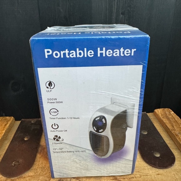 Compact portable heater with a timer function. Features a sleek white and black design. Ideal for quick heating needs.