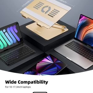 Easily adjustable for comfort and height, angle a based for your need. Just fold and carry. Available color Black, gold, pink, silver. GET A FREE WIRELESS MOUSE UPON PURCHASE.