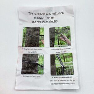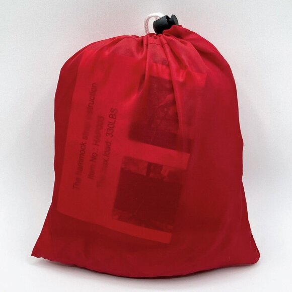 New: Take time to relax outdoors! Perfect for when you want to relax on the go, this portable, lightweight hammock is made of heavy duty polyester that supports up to 300 pounds. Self packs in a small drawstring pouch and includes 2 straps and carabiners to attach between your favorite trees.