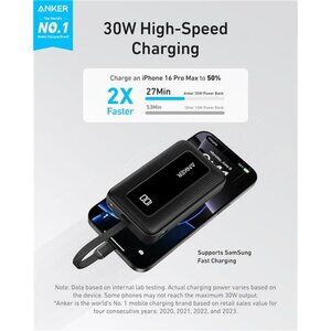 🧿30W Bi-Directional Charging: Enjoy two-way fast charging, a feature found in many Anker power banks, with up to 30W output and 20W input. (Note: Compatible with iPhone 15 Series, MacBook, Galaxy, iPad, Nintendo Switch, Steam Deck.)