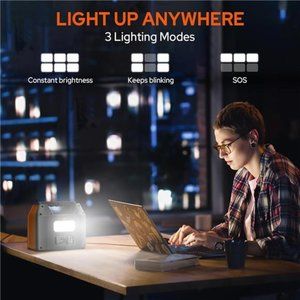 🧿Small Generators Power Supply: Portable power station with ac outlet is equipped with a 155Wh lithium-ion battery pack,much quieter than other generators! Only 4 pounds, easy to carry for your next camp trip or hiking. Built-in LED light features three modes, light, strobe, and SOS, very useful and handy for the camping night, blackout and emergency