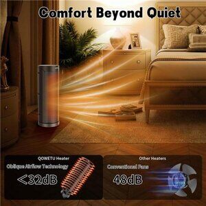 【Quiet and Gentle】- Thanks to Oblique Airflow technology , this electric heater greatly reduces wind noise to 32dB, keeping you feel like in a quiet library. Touching button with a mute mode setting won't disturb your child's sleep or your family at work when you need to adjust the mode, comfort to your sleep on winter night.