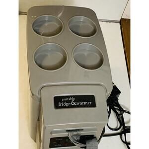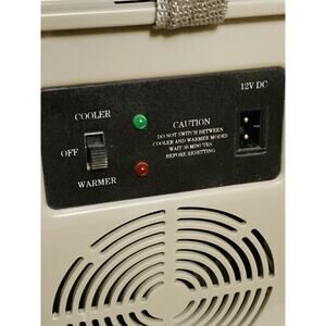 The Portable Travel Camping Cooler & Warmer is a versatile can cooler designed for outdoor activities like camping, fishing, and beach trips. With a capacity to hold 9 x 330ml cans, this 12-volt electric cooler is suitable for keeping drinks cool while on the go. Made of aluminum and plastic, this gray and beige cooler is portable and comes with a cup holder for added convenience. Perfect for those looking for a compact and efficient way to refrigerate their favorite beverages in the great outdoors.
