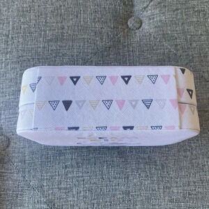 White with navy, pink and green DREAM BIG and a cute elephant!