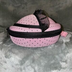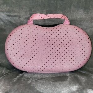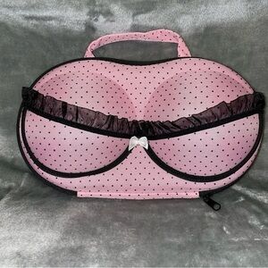 Portable Travel Lingerie Bra Storage Case Container Packing Organizer Zip Closure Pink Polka Dot One Size