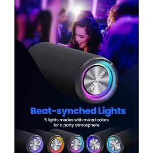Portable waterproof Bluetooth speaker with bass boost, LED light, 24W power, 100ft range, and stereo sound. For outdoor, travel, party, home, office, and car use.