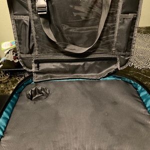Portable activity tray. Great for long car rides to help keep kids occupied. Can be used for a tray to hold books, coloring books, toys and can hold an iPad. It can also be used to hold food and has a cup holder. In great condition. It’s an aqua & gray color.