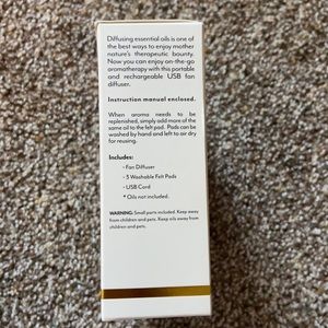 Includes: can diffuser, 3 washable felt pads, USB cord