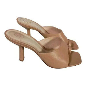 Porte & Paire Sandals Heels Tan Leather Toe Ring Women's 39/US 8 - 8.5