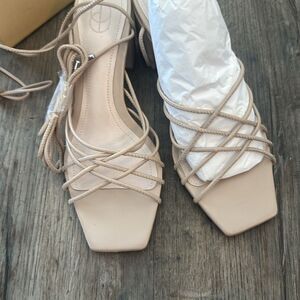 Porte & Paire Women's Leather Strappy Square Toe Sandals Cream Tan Size 38