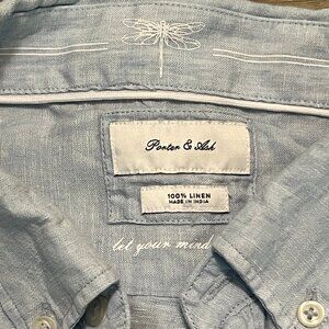Porter & Ash 100% Linen Men's XL Long Sleeve Light Blue Button Up Shirt