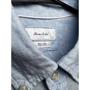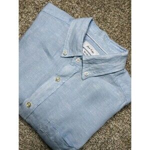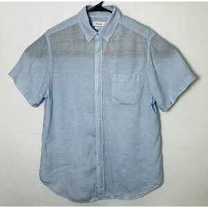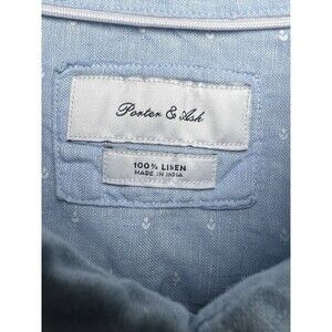 Porter & Ash Blue 100% Linen Short Sleeve Button Down Shirt Men's Size Large