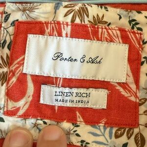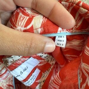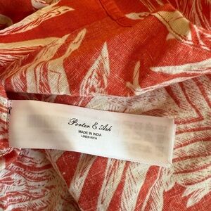 Porter & Ash Linen Cotton Button Front Shirt Tropical Leaf Print Small