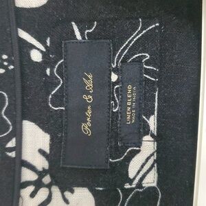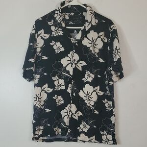 Porter & Ash Linen Floral Hawaiian Button Down Shirt Size Large Mens Black Ivory