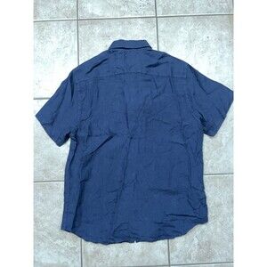 Porter & Ash Linen Shirt Mens Large Blue Casual Party Button Down Short Sleeve