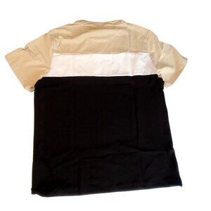 Designed with a meticulous focus on both functionality and aesthetic appeal, this Porter & Ash colorblock performance tee offers a harmonious blend of comfort and style. Its breathable fabric features a four-way stretch for optimal movement, making it suitable for active lifestyles. The neutral tones ensure adaptability for various wardrobe combinations.