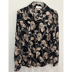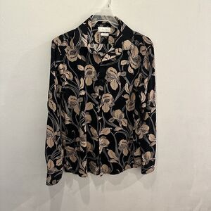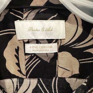 Porter and Ash Button Down Shirt Men Med Black Floral Hawaiian Long Sleeve