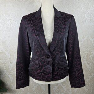 Portfolio Louben Size 8 Black Purple Animal Print Blazer 1 Button Career Office