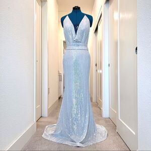 Portia & Scarlett PS2069 Sequined Surplice Halter Prom Dress size 12