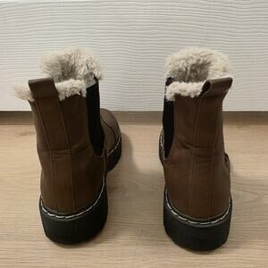 Portland Boot Company Brown Leather Faux Fur Trim Chelsea Ankle Boots Size 8