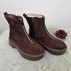 Portland Boot Company Lug Sole Front Zip Platform Boots Brown Suede Size 6.5