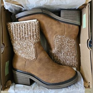 Portland Boot Company Women's Cozy Sweater Knit Bootie Cognac