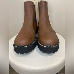 Portland Boot Company Women's Faux Fur Trim Chelsea Boot Brown