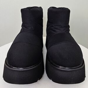 These booties for women feature a puff upper design with a mini-calf silhouette and pull-on style. The toggle closure at the opening is great for easy on and off with cinching to help keep out the chill. These women’s booties have a jersey lining with a padded insole for added comfort.