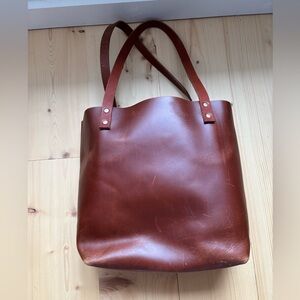 Portland Leather medium classic tote in honey. Normal/minor signs of wear, some scuffs and scratches on the sides. Leather is in excellent condition.