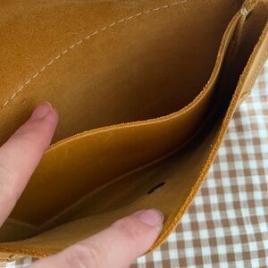Envelope purse/ wallet in the color “turmeric.” In excellent condition, but I did remove the card slot for more space! About 9”long and 6” tall.