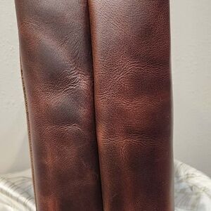 Portland leather goods in a medium crossbody tote! I believe this color maybe Timber, not 100% sure. I did remove the zipper from the top of the bag.