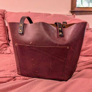 Oversized Tote from Portland Leather Goods PLG Cognac extra large.