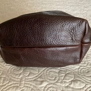 Large bucket bag, pre owned, in excellent condition , relaxed grain leather drawstring , interior pocket, adjustable crossbody shoulder strap 42”-54”. Size height 10.5” depth 5”, bottom seam width 9”.