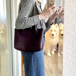 Large premium Raindrop with zipper in plum. . The bag is in perfect condition. It has not been used. NOTE: It does NOT have a crossbody strap. I cut the crossbody strap down to a shoulder strap and it came out very well. Please see the photos. Other than that, it's perfect in every day. From a non-smoking, non-perfume home.
