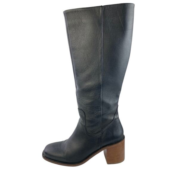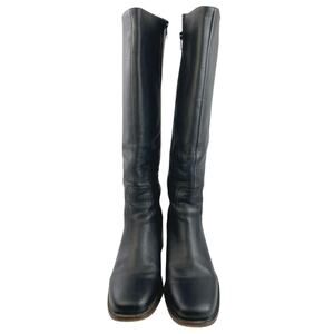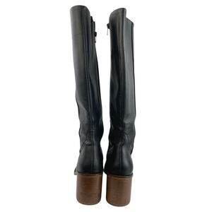 Portland Leather Patina Black Leather Block Heels Zip Up Knee High Boots Size 8.5